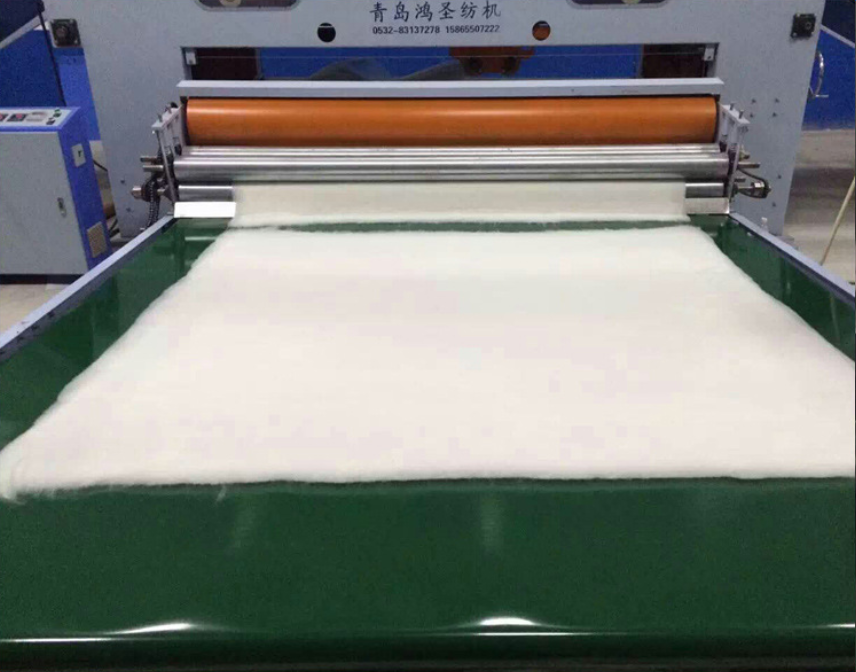 全自動棉被生產線組成網狀纖維薄層,再集合成纖維條的紡紗機器。由于纖維的種類和工藝要求不同,梳理機也有各種不同的結構,如梳棉機、梳毛機、梳麻機等。經過梳理后的纖維條,許多雜質和疵點已被排除,不同品質和色澤的纖維得到較充分的混和,纖維初步伸直,且具有方向性。這些都是生產品質優良紗線的重要條件。
