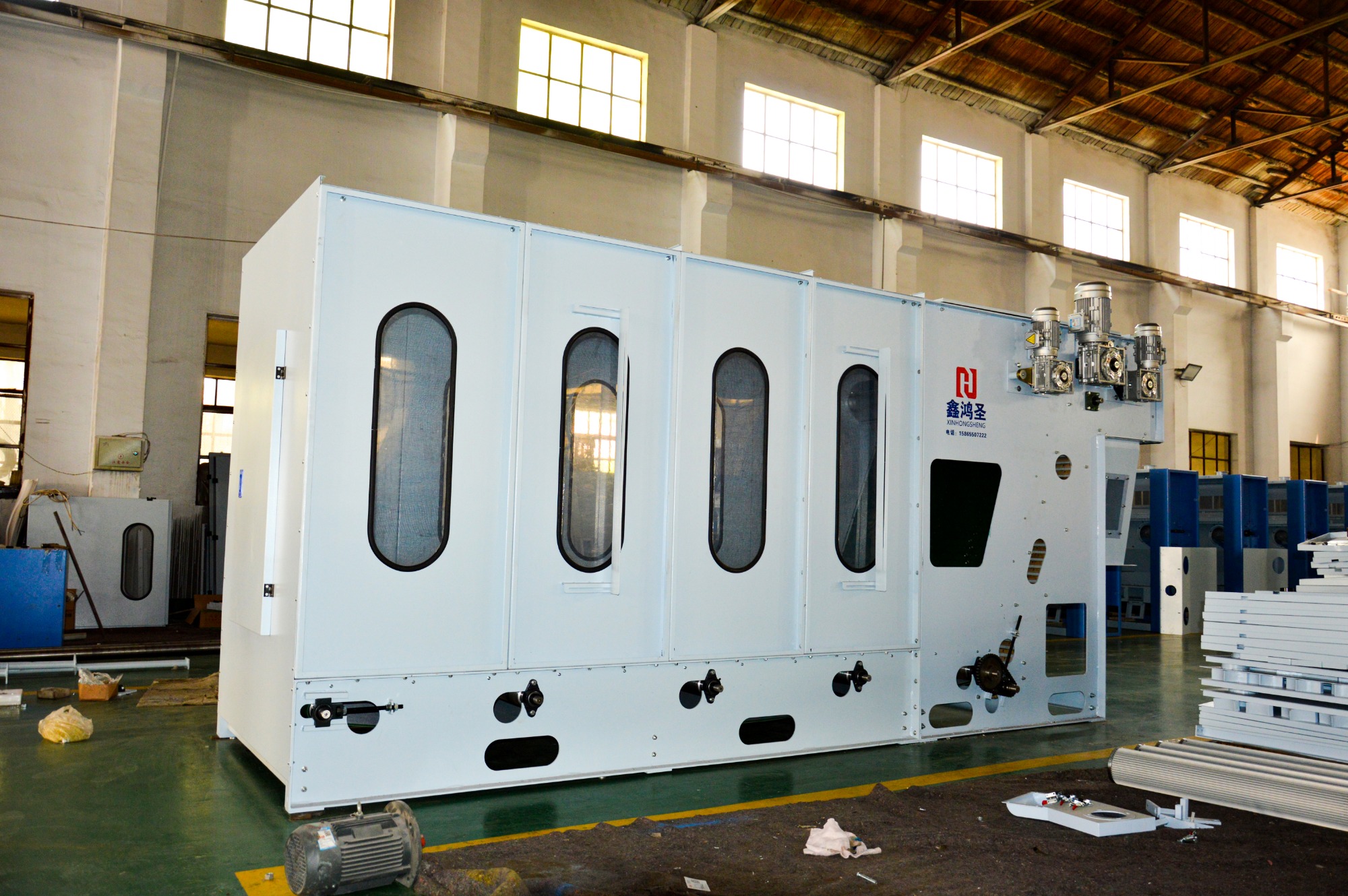 用途特點:無膠棉設備/無膠棉生產線、硬質棉生產線、主要生產無膠棉、仿絲棉、薄型硬質棉。烘房鏈條,簾棒夾持進網。用特氟龍網包覆。上層可電動升降,主要用于床上用服裝家具、汽車、沙發等高級填充料。平均克重在40g-400g,門幅在0.5m-3.4m。生產線聯合機組工藝流程:開松機-給棉機-梳理機-鋪網機-烘箱-成卷機。產品圖片: